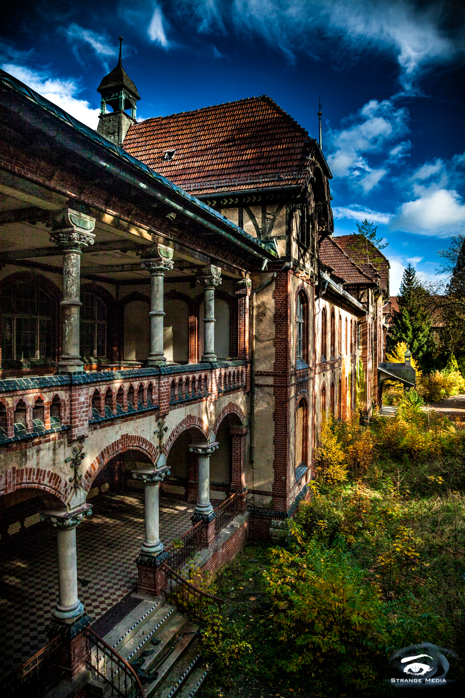 Urban exploration photography focuses on abandoned buildings , post apocalyptic sites, street art and general desolation. Strange Media took its cameras to Beelitz Heilstätten, an abandoned sanitorium outside of Berlin, Germany. In a photo study of abandoned places, HDR, VR360 shots, time lapse photography and general stills were taken to document this historic and ominous landmark. This set of imagery relies predominantly on ambient light, creative angles, and composition.